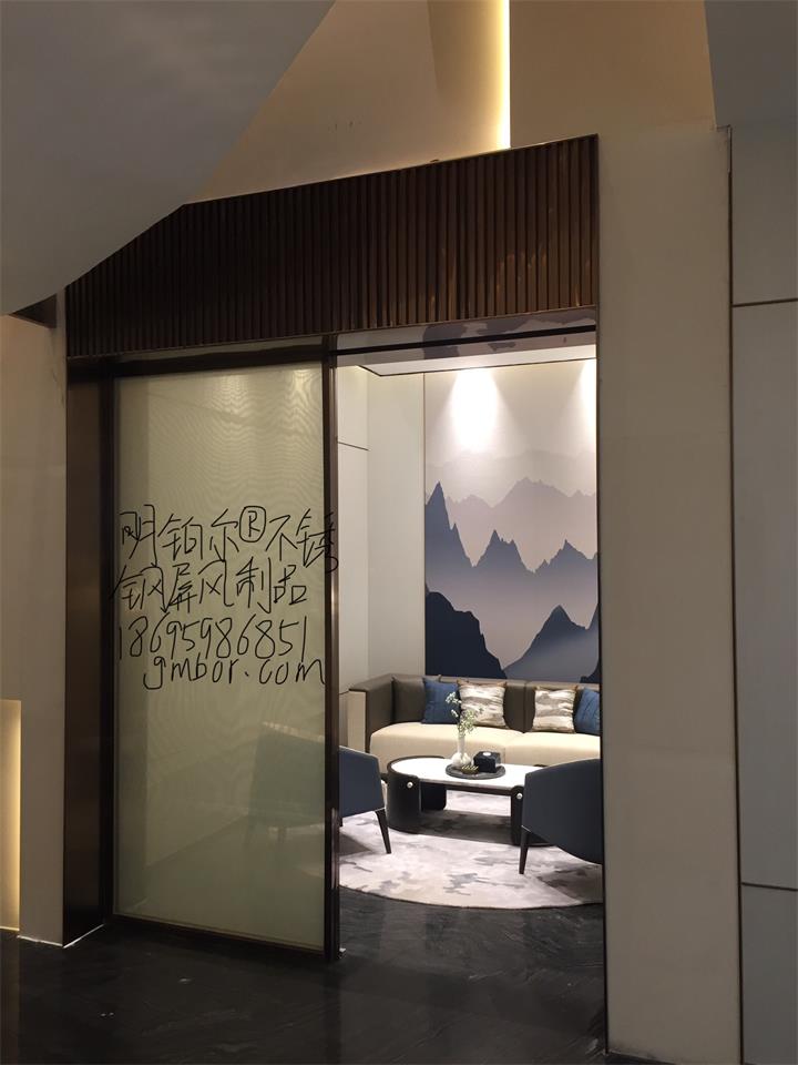 不銹鋼藝術屏風隔斷造型,明鉑爾不銹鋼藝術工程,南陽青楓苑售樓中心,深圳香港設計大師,國際藝術標準設計,